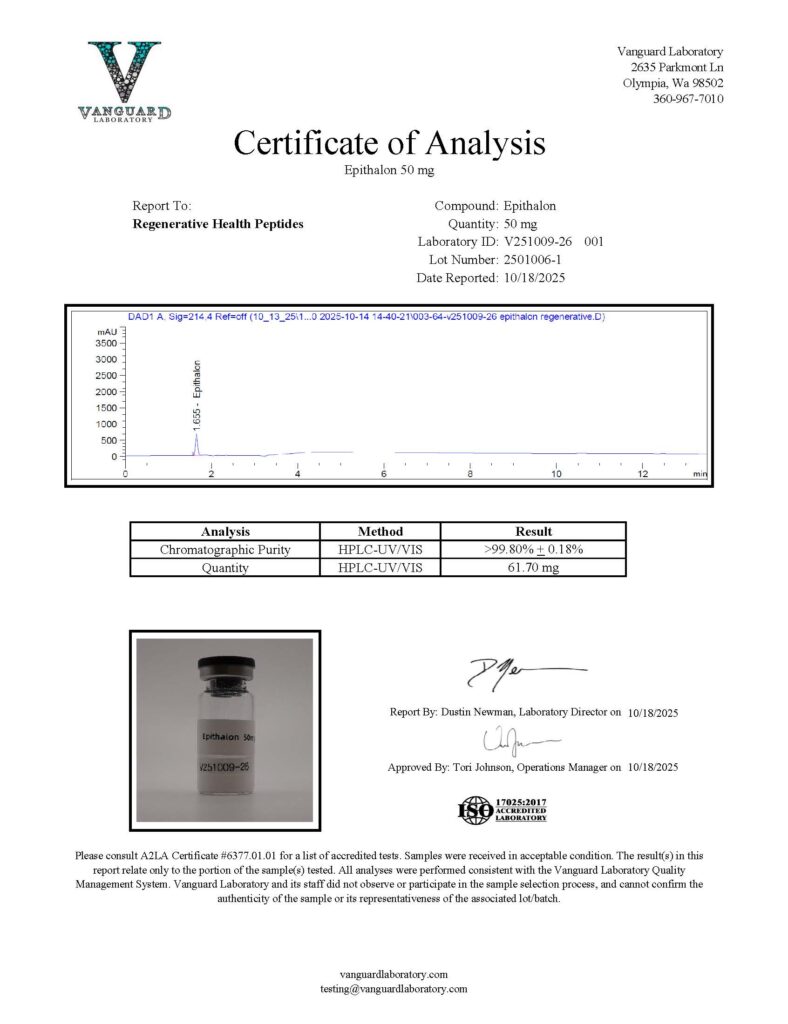 - Many vendor summaries and research hubs emphasize using validated analytical methods (HPLC, MS) to confirm identity and purity prior to experiments and recommend stability controls, appropriate storage, and use of matched experimental controls. https://peptideinitiative.com/peptides/epithalon/research ; https://uspeptideco.com/wp-content/uploads/2025/05/Epithalon-one-page.pdf .