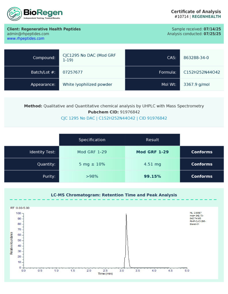 This peptide pairing is widely utilized in research exploring anabolic growth, fat metabolism, and neurotrophic effects. Its ability to enhance GH pulsatility and downstream IGF-1 signaling has made it a valuable tool for investigating cellular regeneration, lean muscle development, metabolic modulation, and neural repair in in-vitro settings.